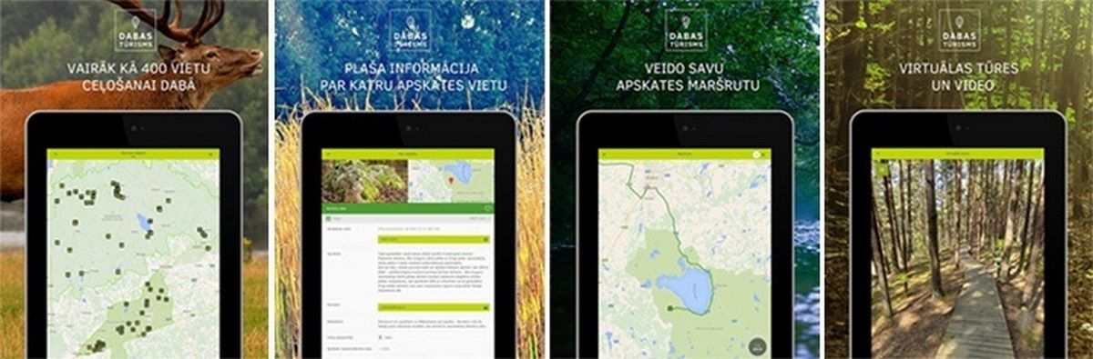 Lietotne palīdz rast atbildes uz jautājumiem – kur šodien doties vai ko darīt, jo tajā ir vairāk nekā 400 dažādu dabas tūrisma galamērķu - gan dabas takas, gan skatu vietas, torņi, visā Latvijas teritorijā. Tās saturs ir sakārtots vairāk nekā 20 dažādās kategorijās, kas ļauj ērti izvēlēties sev piemērotāko veidu ceļošanai dabā. Lai iedrošinātu pamēģināt, izveidotas virtuālās tūres un 5 filmas par īpaši aizsargājamo dabas teritoriju daudzveidību Latvijā. Tās patiesi pārsteigs un neliks vilcināties, lai autu kājas un dotos izbaudīt dabas skaistumu, kuru patiesi sajust var tikai atrodoties tajā.