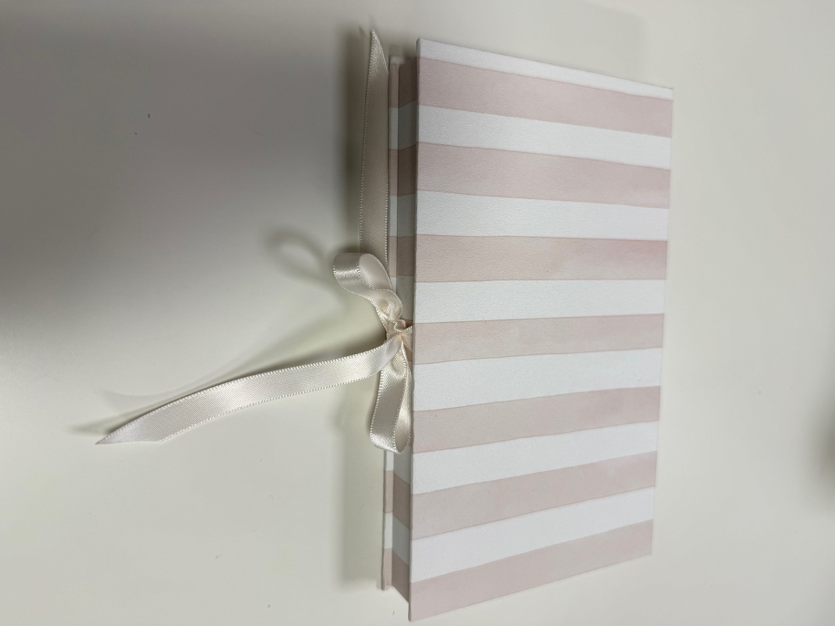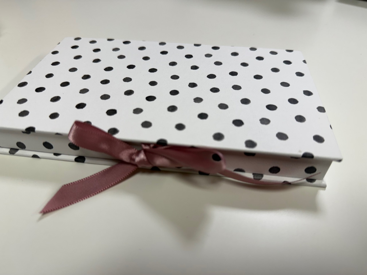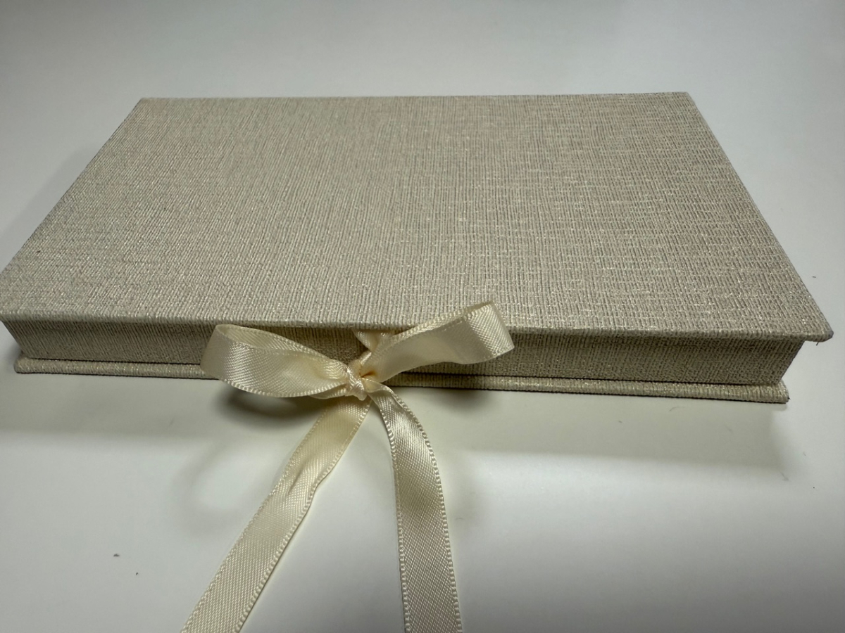 Kastīte ir ar rokām darināta no kvalitatīva, stingra kartona, apvilkta ar rūpīgi atlasītiem dizaina materiāliem. Iespēwja kastīti personalizēt ar vārdiem, datumu, kas piešķir dāvanai personisku pieskārienu.