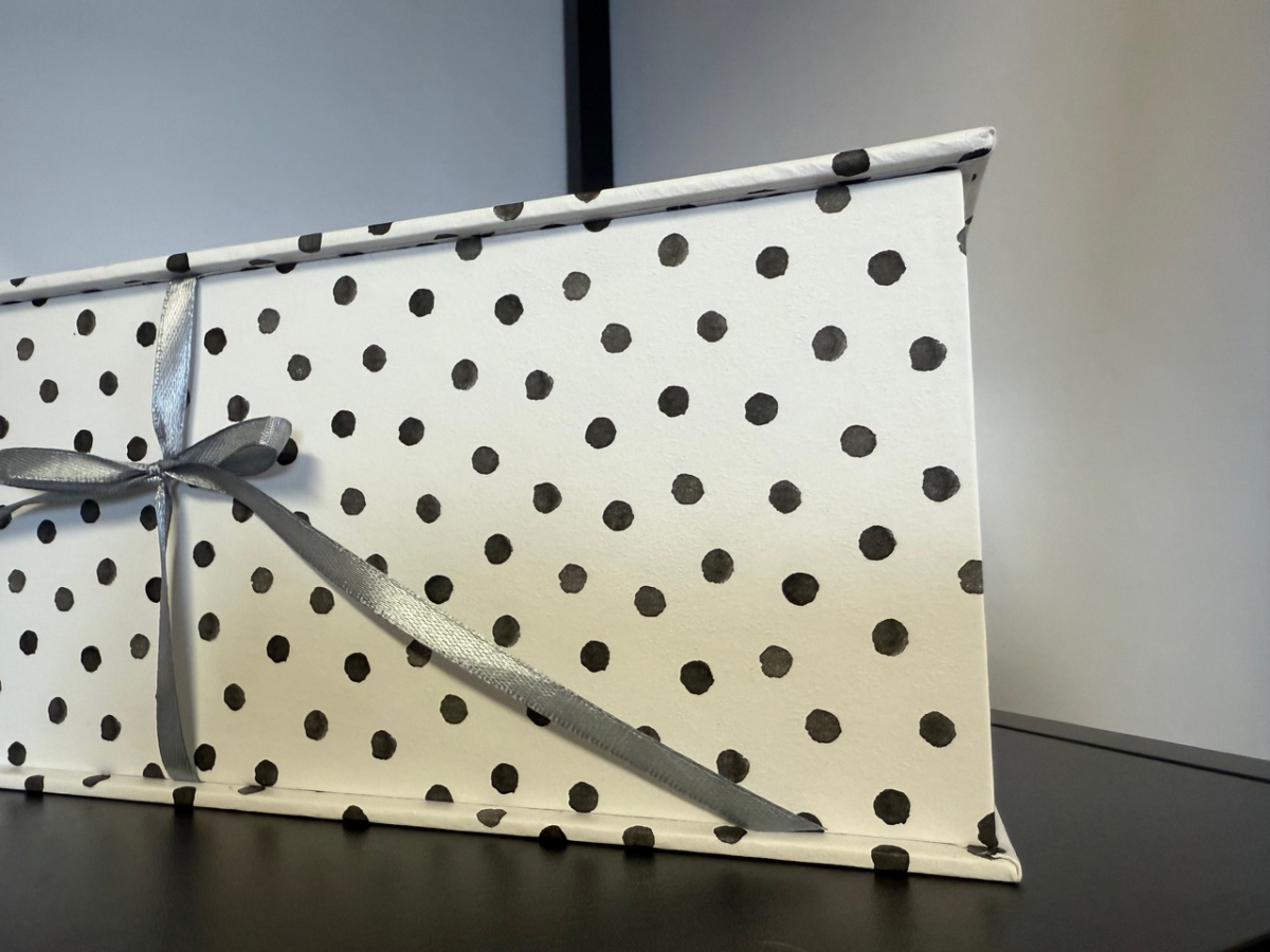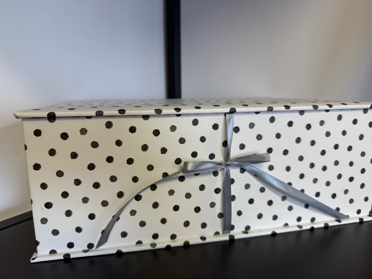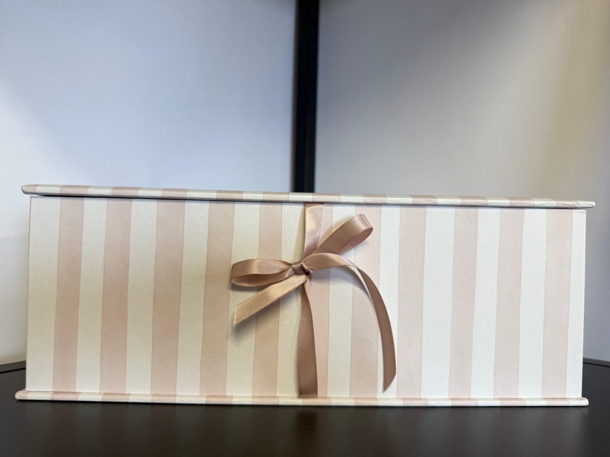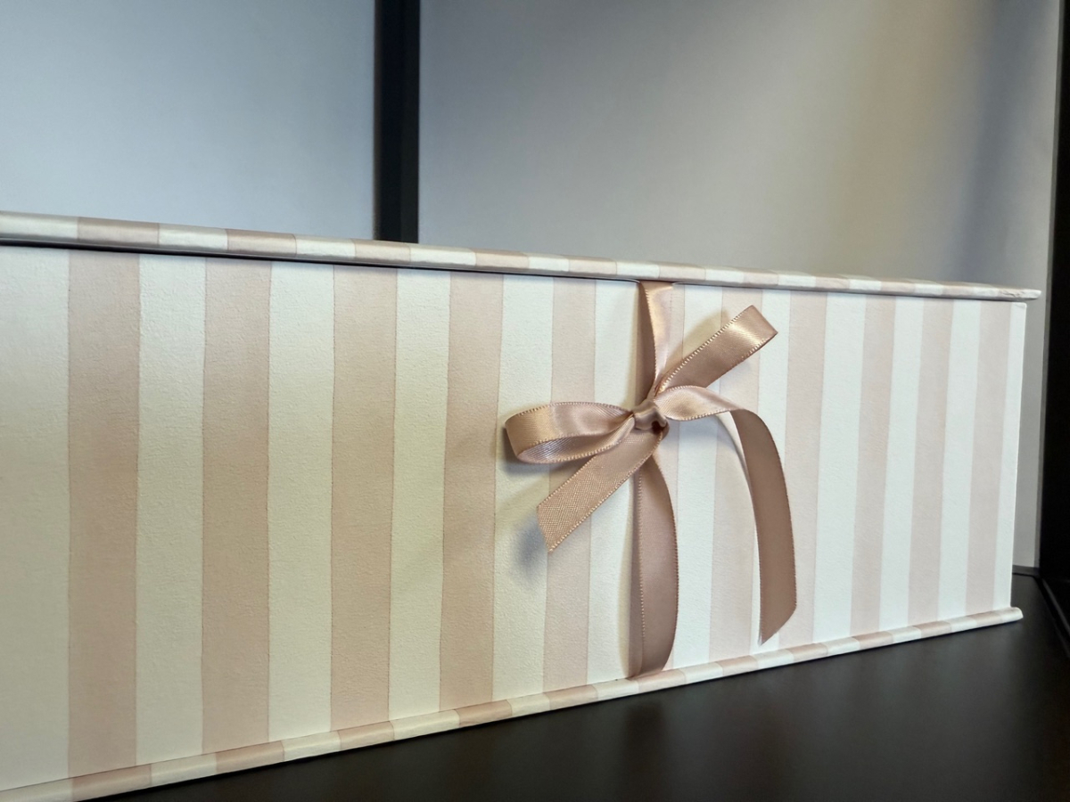 Lāde ir ar rokām darināta no kvalitatīva, stingra kartona un apvilkta ar rūpīgi atlasītiem dizaina materiāliem.. Pārdomātais dizains un iespēju lādi personalizēt ar vārdu, datumu vai īpašu vēstījumu, padarot to personisku.