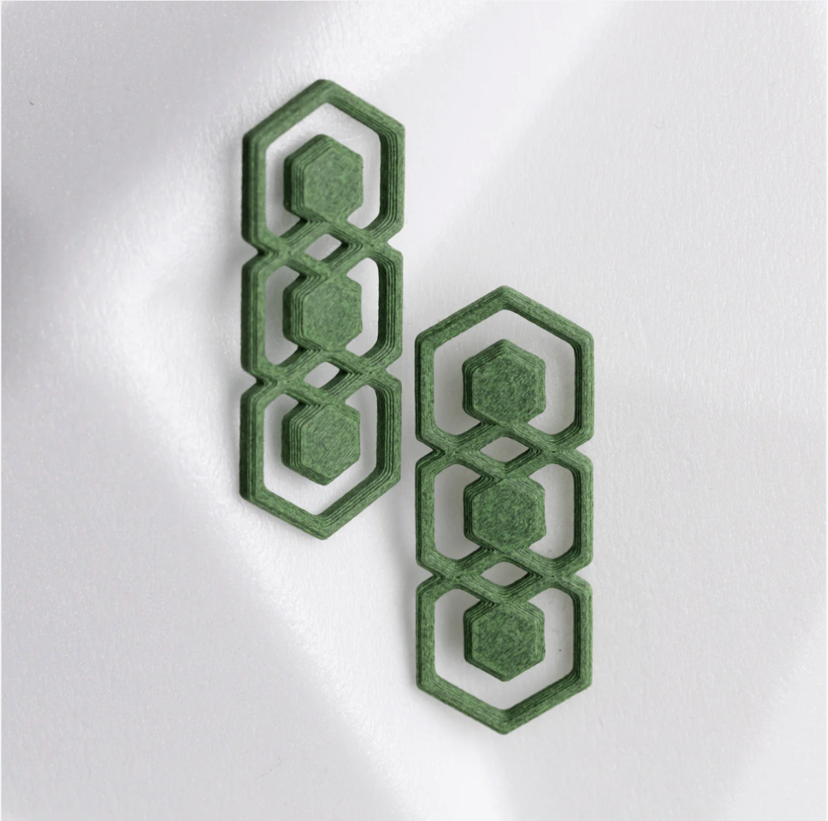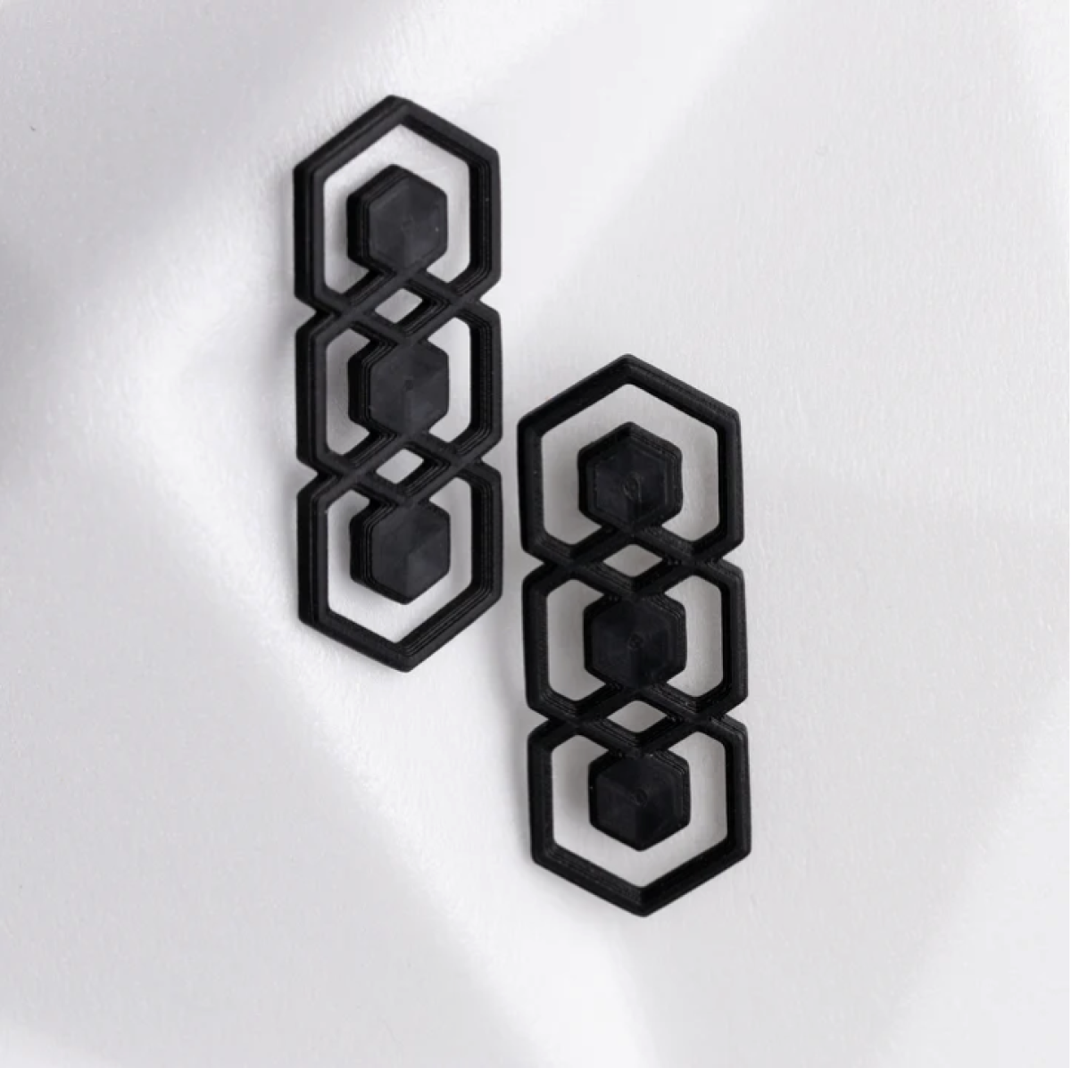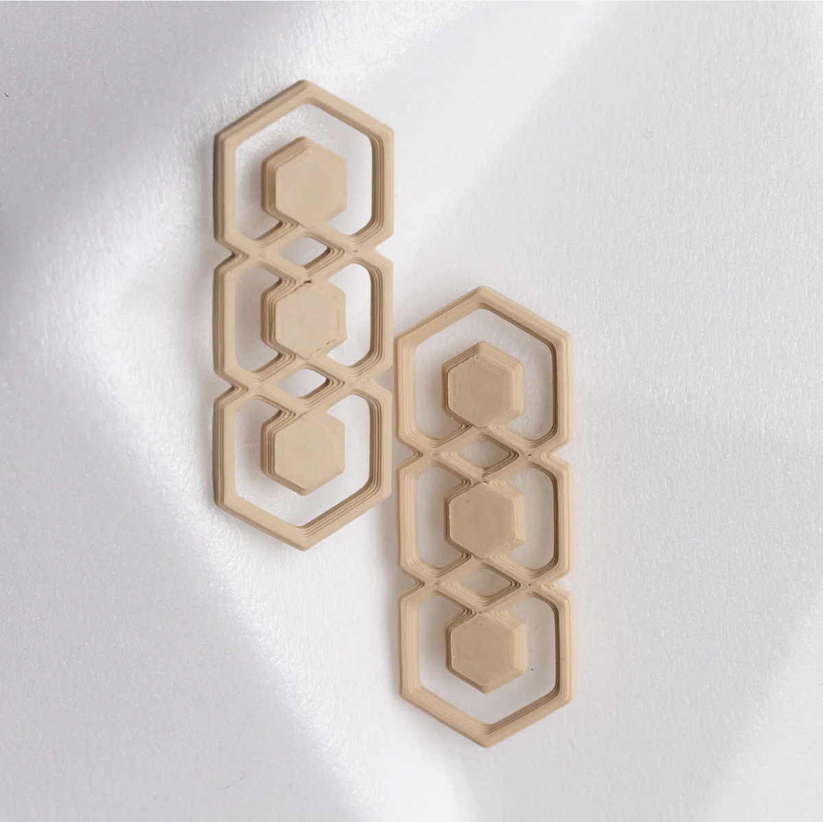 Dabas ģeometrija. Šiem auskariem izvēlējāmies savstarpēji savienoto sešstūru dizainu, kas atspoguļo bišu šūnas nevainojamo eleganci.