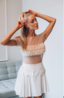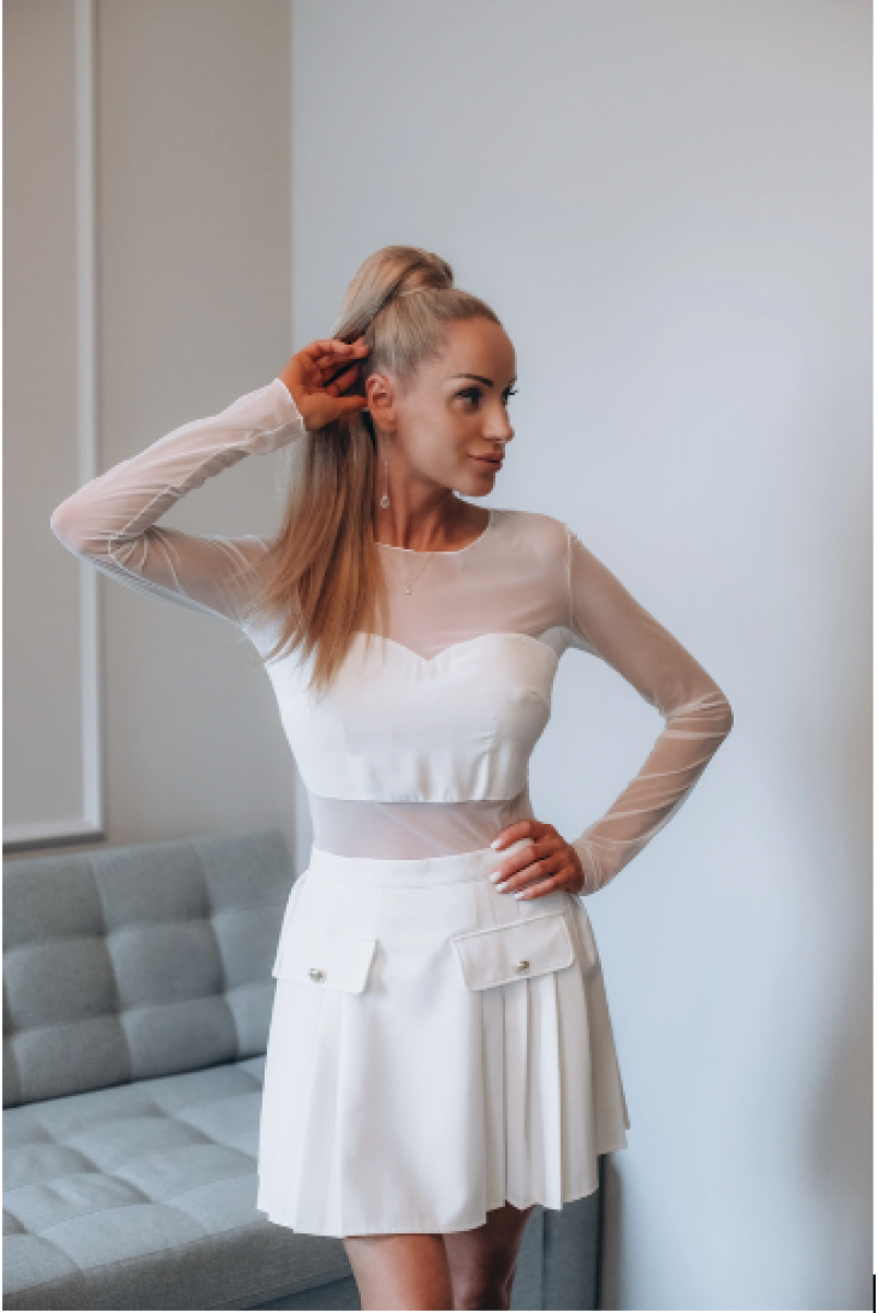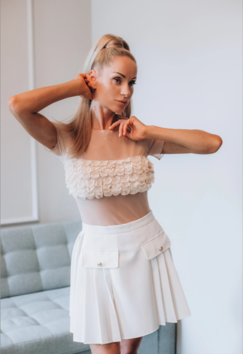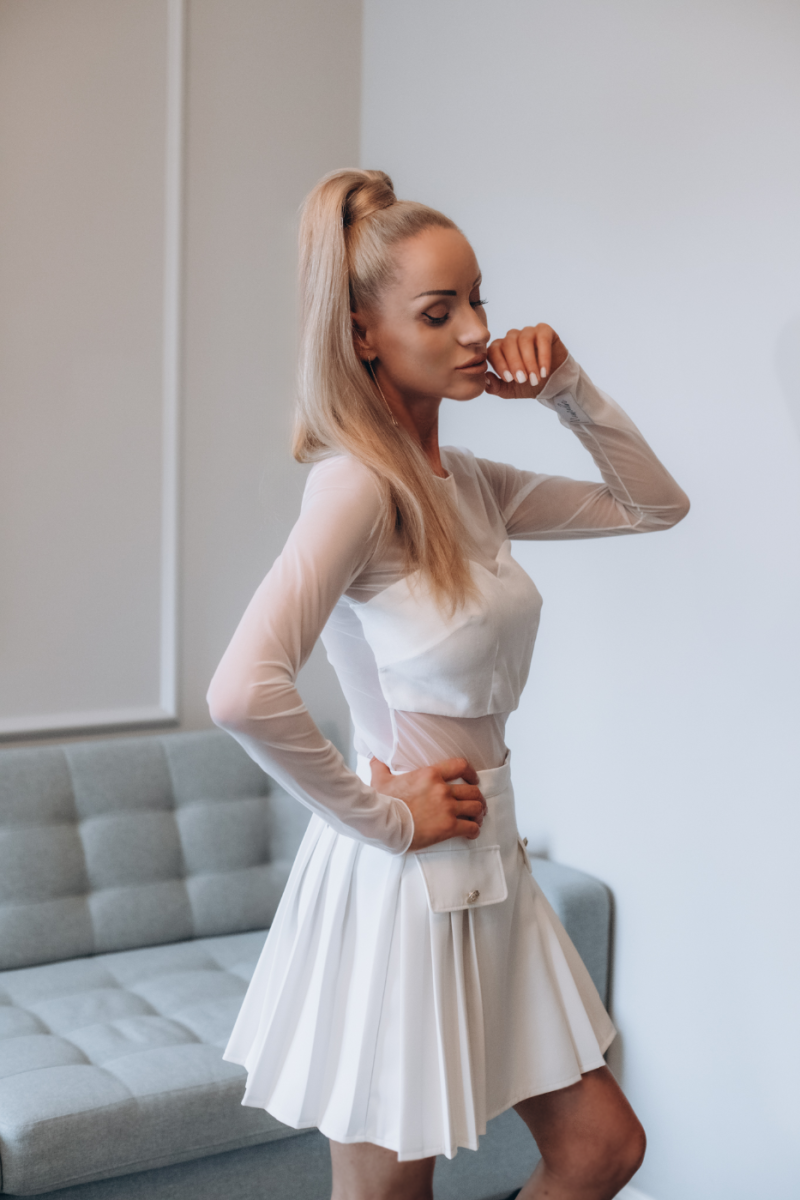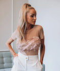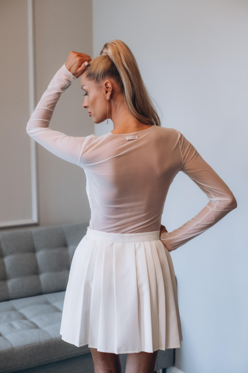 Eleganti tilla tops izgatavots no mīksta un elastīga materiāla. Minimālais dizains piešķir tēlam īpašu sievišķību un juteklisku izsmalcinātību.