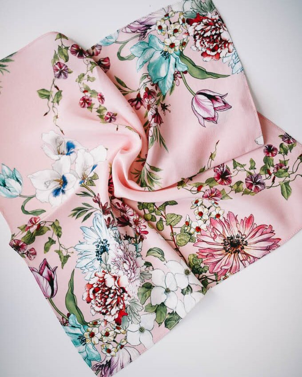 Zīda lakatiņi ar izsmalcinātu ziedu apdruku. Krāsas, kuras piešķirs vairāk krāsu tavam ikdienas apģērbam. Kamillas aksesuāru kolekcija.