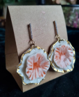 Produkta raksturojums: roku darbs. Individuāls dizains. Apgleznojumā izmantota zelta dārgmetāla krāsa. Auskaru sagatave - nagliņa zelta krāsā ar cirkoniem, noturīgs, antialerģisks pārklājums, garums 18 mm