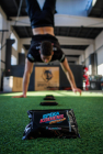 Zemesriekstu sviesta un kanēļa proteīna batoniņš ar balto šokolādi.