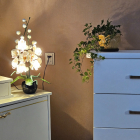 Lampiņas augstums ~ 60 cm, 98 ziedi, 5 no tiem ar spuldzītēm. Spuldzītes maināmas (3 W). Latvijā radīts roku darbs.