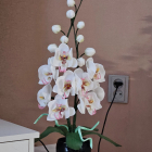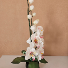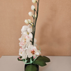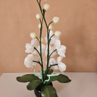 Orhideja podiņā- elegances pieskāriens jūsu mājās! Šai izsmalcinātajai orhidejai katrs zieds ir tonēts un rūpīgi veidots, lai panāktu īsta zieda smalkumu un krāsu nianses. Gaismas starojums un krāsu rotaļas radīs burvīgu akcentu un romantisku atmosfēru telpā. Izslēgtā veidā tā kalpos kā košs, pamanāms un oriģināls interjera elements, kas piesaista skatienu.