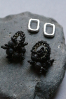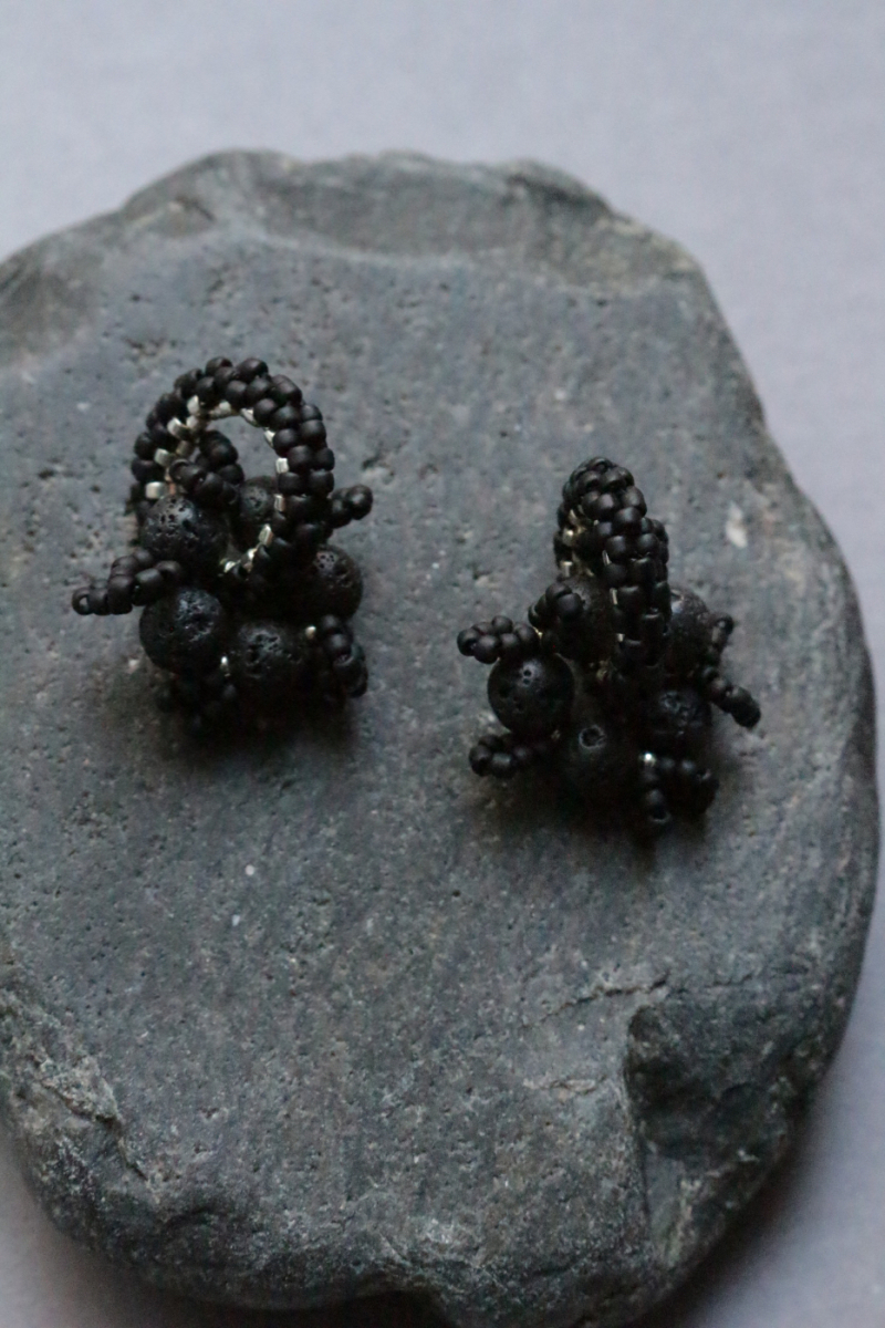 Melni pērļoti auskari ar akcentējošu elementu no dabīgā akmens - Lava