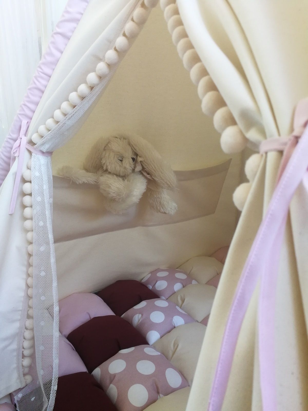 • Svētku Sajūta piedāvā: Dizaina teltis/vigvamus bērniem ( dažāda izmēra, dizaina, materiālu un variantu) Dizaina mantu grozi, IZMĒRI: S, M,L Personalizēti dekoratīvie spilveni (kvadrāts, mākonis, zvaigzne, mēness, saule, aplis ) Kokvilnas karodziņu virtenes Dizaina galvas kroņi bērniem Lielie sēžam spilveni Paklāju veidi: Polsterēts ( sintepona polsterējums apmēram 4cm ), Personalizētam dizainam iespējams izvēlēties papildus: Vārds/teksts/Aplikācija, LED lampiņa telts iekšpusē, Mantu kabata, Tilla aizkars Dekoratīvas filca spalvas koku galos, Karodziņi koku galos, Dekoratīvas koka spalvas virs telts ieejas. DEKORATĪVIE SPILVENI ( iespējams personalizēt): Individuāls vārds/teksts/aplikācija MANTU GROZI izmēri: S= 45cm x 35cm, M= 60cm x 40cm, L= 70cm x 45cm P.S. katrs vigvams ir nodrošināts ar stabilizatoru ( telts nostiprināšanas sistēma ). Mākoņsega ( holyfiber polsterējums apmēram 8cm ). Izpildām individuālus pasūtījumus līdz 8 darba dienām, ja izvēles audums/audumi ir pietiekamā daudzumā uz vietas ( audumu izvēle apskatāma mājas lapā ) VAI iegādājies uzreiz pieejamos/gatavos variantus ( mājas lapā ).